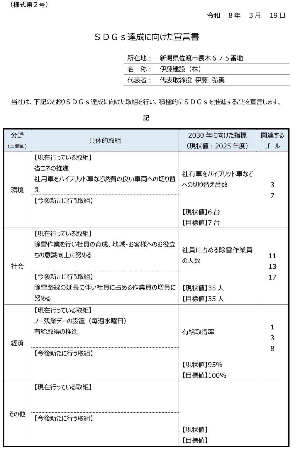 - 弊社のSDGsに向けた取組